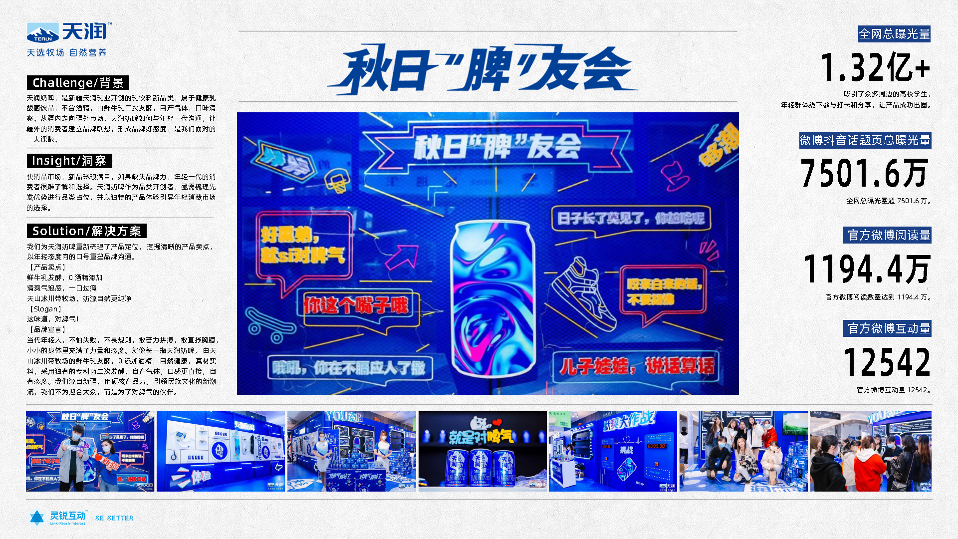 - 我們為(wèi)天潤奶啤重新梳理(lǐ)了(le)産品定位,挖掘清晰的(de)産品賣點,以年(nián)輕态度向的(de)口号重塑品牌溝通(tōng)。